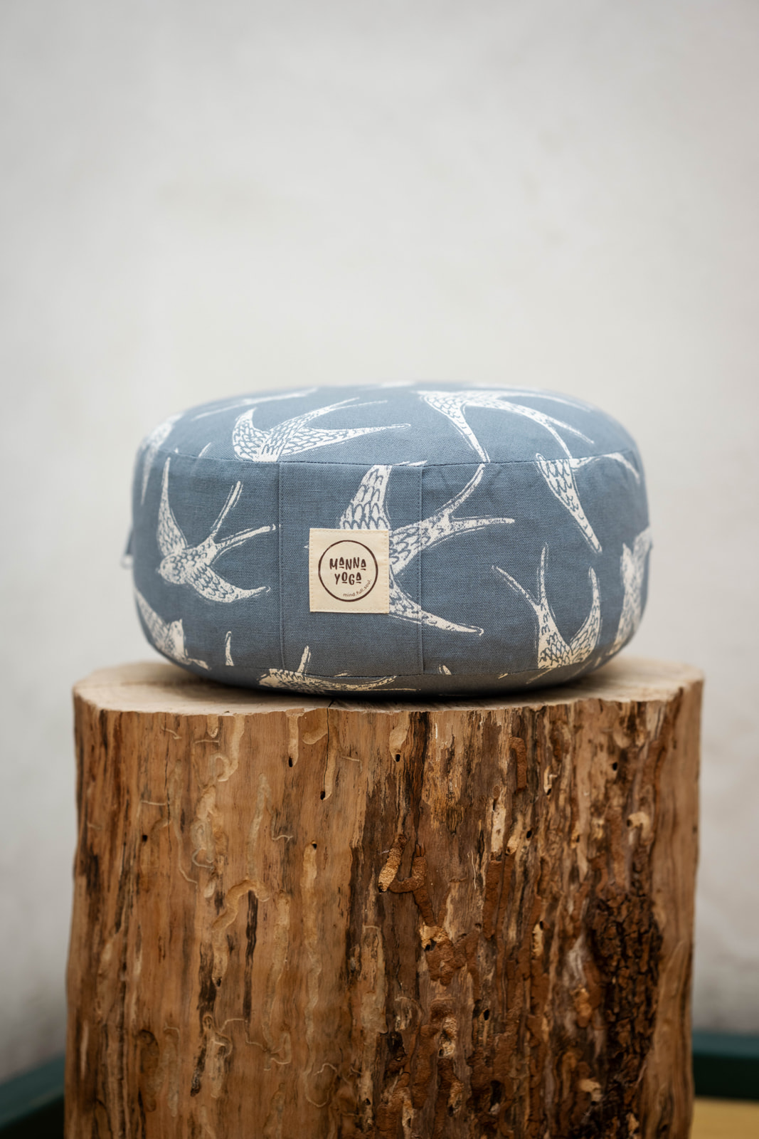 Our "Free Swallow" meditation cushion in soft smoky blue represents freedom, lightness, and the confidence to be carried—a companion that invites you to let go and fill your practice with a sense of expansiveness.